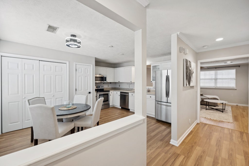 PRICE IMPROVEMENT!! This beautiful 3 bedroom, 2 1/2 bath townhome has many updates to include new kitchen floors, an updated privacy fence, fresh paint, stainless steel Samsung appliances, new blinds and more. Refrigerator, washer and dryer are staying! The large primary bedroom has a huge walk in closet with a garden tub and touch screen vanity lights in both upstairs bathrooms. Low HOA fees. Reserved and guest parking in this private small community of only 10 townhomes. Your new home is only minutes away from all amenities and make sure to see how close you will be to the lake.