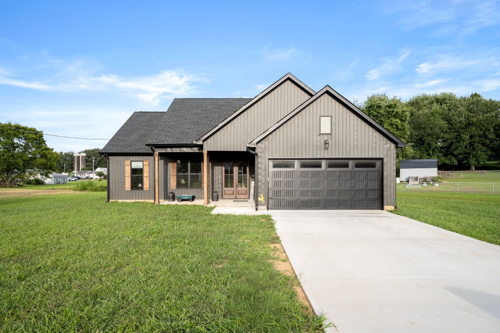 This almost new 2024 built home sits on 1.58 acres and combines charm with thoughtful functionality. Offering 3 bedrooms and 2 baths, the single-level layout features an open-concept design where the kitchen, dining, and living areas flow seamlessly together. The spacious primary suite includes a large walk-in closet with sturdy shelving, while the oversized laundry room provides added convenience. Storage is abundant with an attic—accessible from the insulated two-car garage—that has subflooring already in place. Outdoors, there’s plenty of space to enjoy! A large concrete driveway offers plenty of parking, complete with a picnic area perfect for gatherings or it could be inclosed for a nice shop. This home is move-in ready and offers both comfort and practicality in a beautiful setting. Storage shed does not convey
