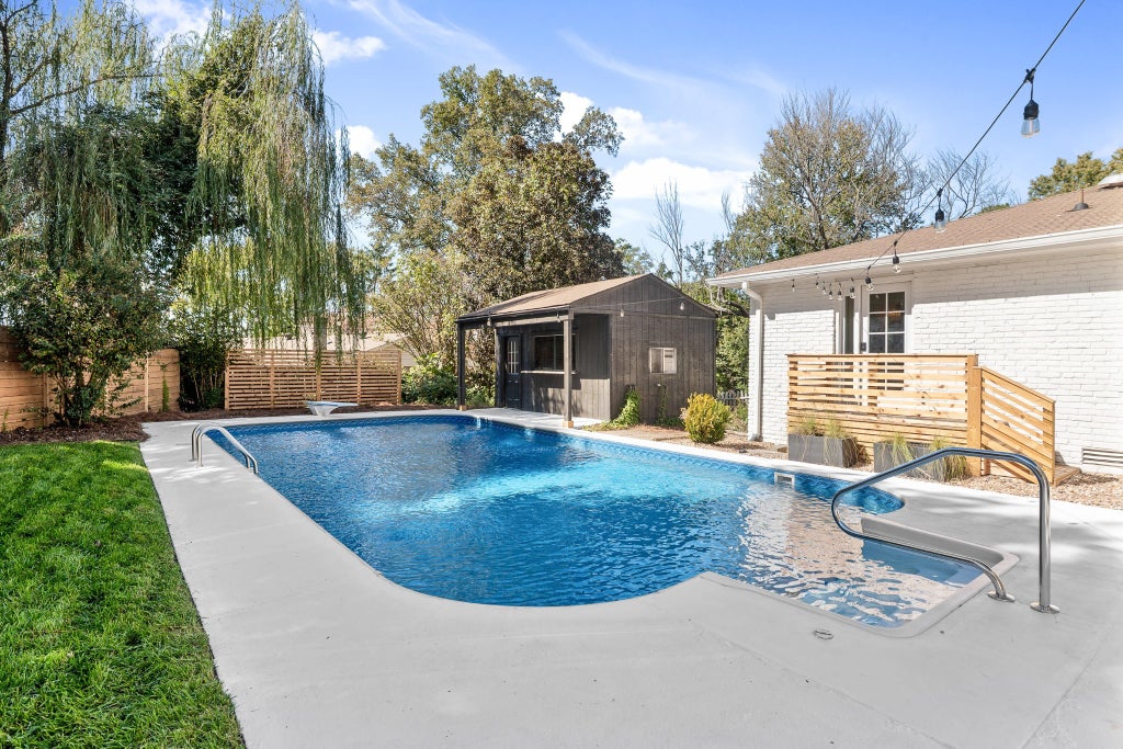Welcome to your South Nashville retreat — a move-in-ready haven that blends character, craftsmanship, and comfort, offering more warmth and flexibility than most homes in its class. Perfectly situated just 15 minutes from downtown Nashville and 15 minutes from Franklin, this fully renovated 4-bed, 3-bath property offers both lifestyle and versatility in one rare package. In a market of lookalikes, this is the rare South Nashville home that combines architectural character, privacy, and resort-style living — a find that simply won't repeat itself. Step inside to an airy, open floor plan filled with natural light and thoughtful craftsmanship. The custom kitchen, elevated flooring, and high-end designer tile in all three bathrooms reflect a curated sense of style. Two distinct living spaces provide room for connection and retreat, while the primary suite features private pool access for effortless indoor-outdoor living. On the lower level, a spacious fourth bedroom doubles as a second primary or guest suite, positioned next to a dedicated shower room with its own private entrance to the pool — ideal for guests, multi-generational living, or future rental use. Outdoors, your private garden sanctuary awaits — framed by mature trees and centered around a serene saltwater pool with patio and fire-pit areas designed for gathering, relaxation, and everyday escape. A detached, powered and plumbed poolhouse offers rare future value-add potential for a Detached Accessory Dwelling Unit (DADU), unlocking long-term equity growth, rental income, or creative use. The oversized garage adds further flexibility — ideal for a gym, studio, or workshop. No HOA. Room to grow. Featuring amenities rarely found under $900K, this move-in-ready home delivers the poolside lifestyle, flexibility, and investment upside buyers are seeking in Nashville’s thriving luxury market. GET 2% CREDIT toward closing costs or rate buy-down with our preferred lender.